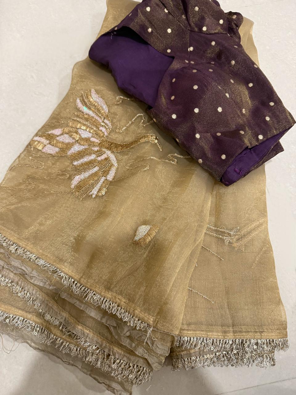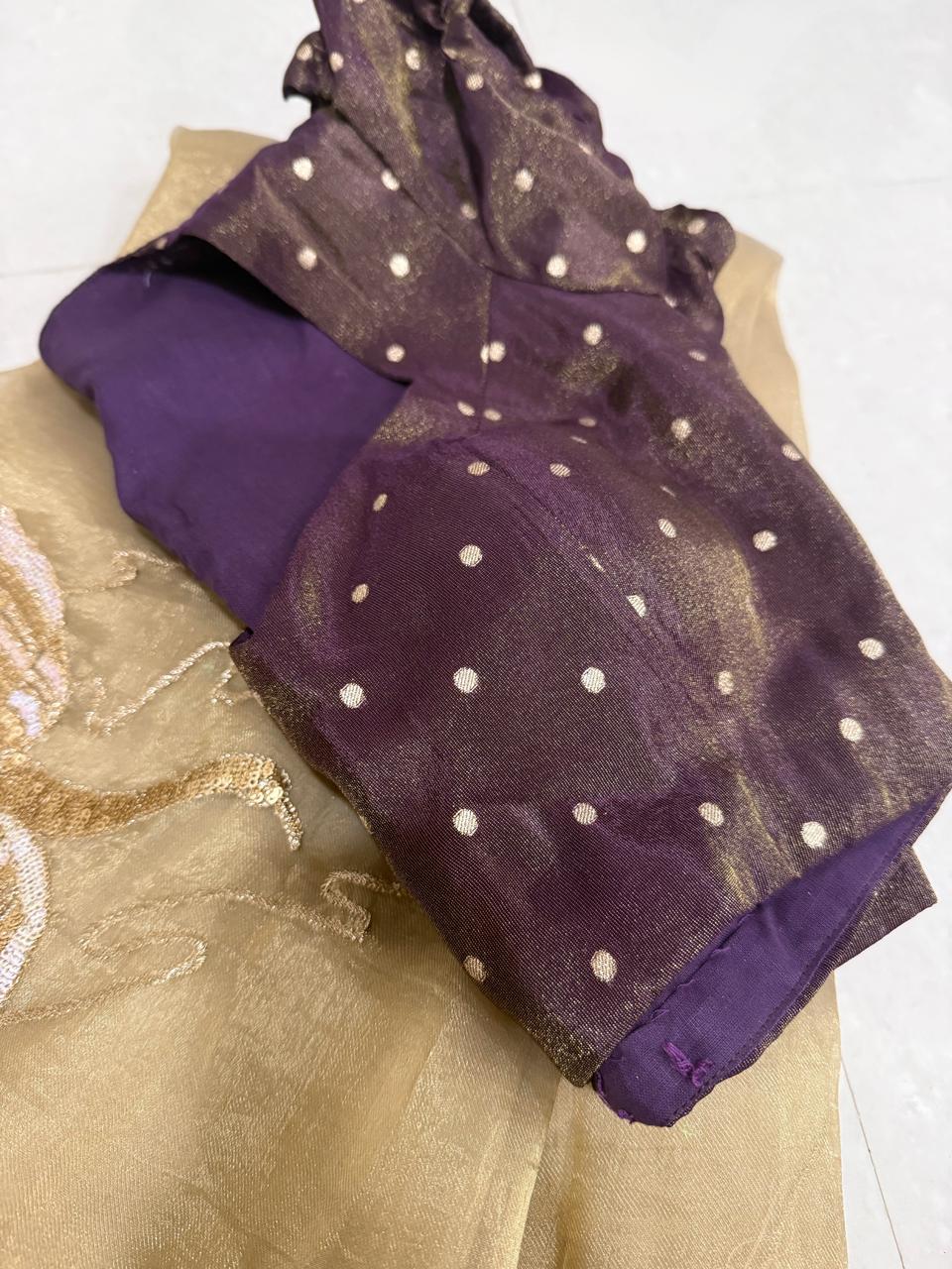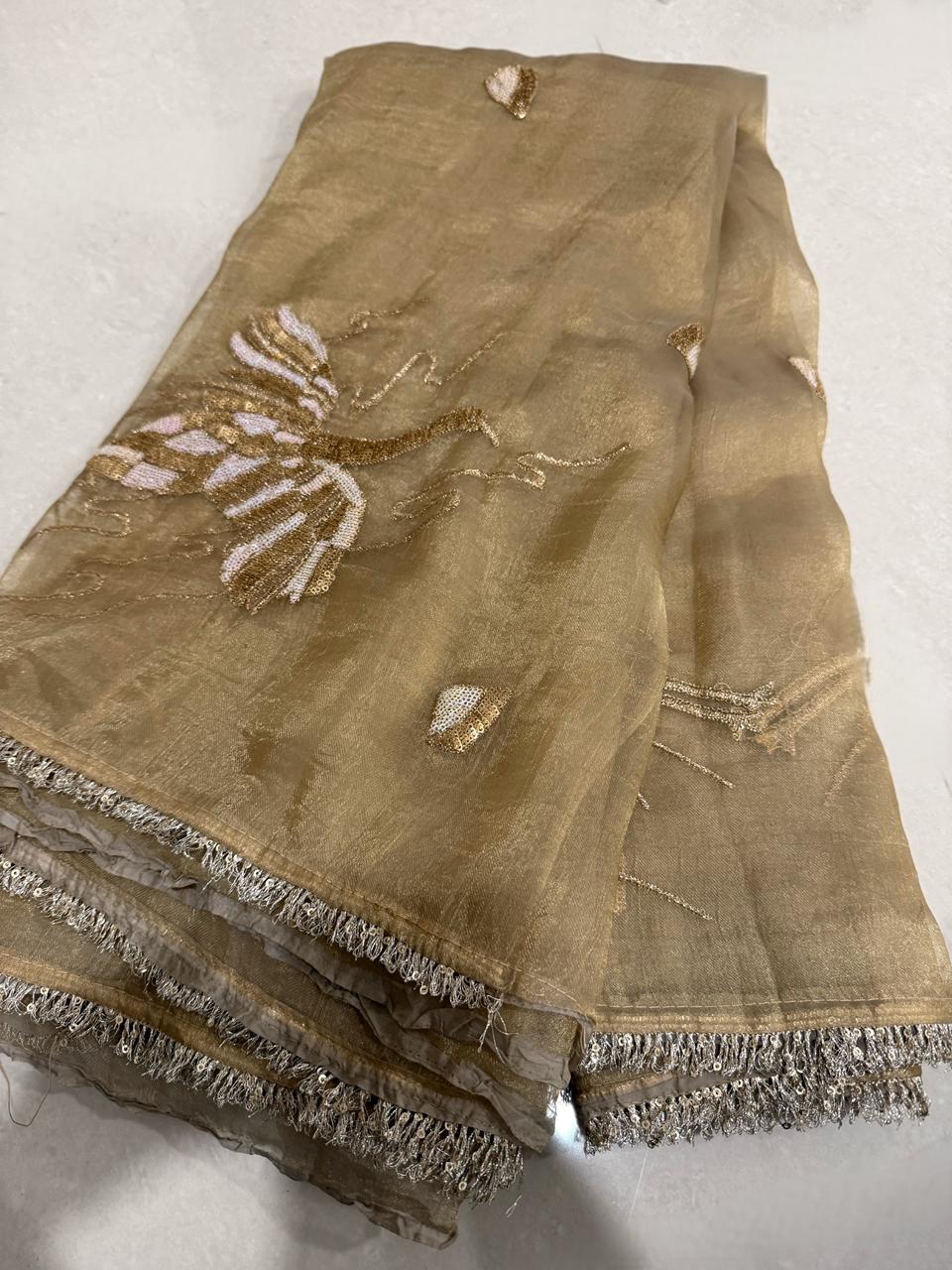 Fabric : Tissue silk with embroidery thread work and maharani border