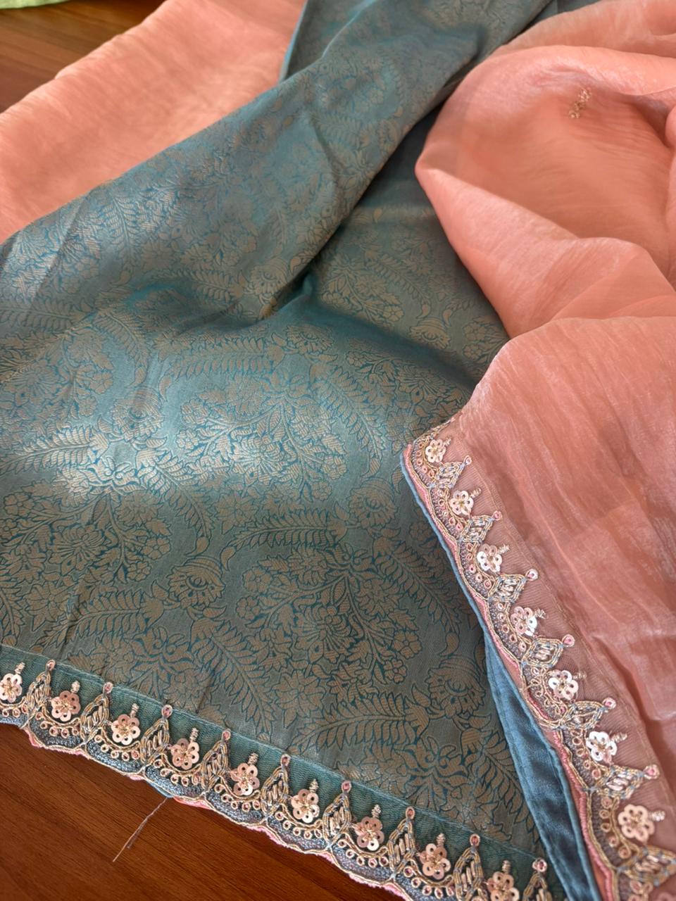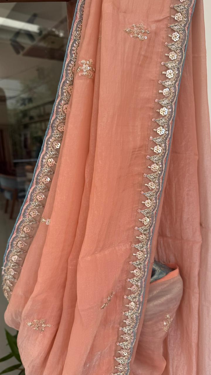 Fabric : Pure space silk with embroidery work border