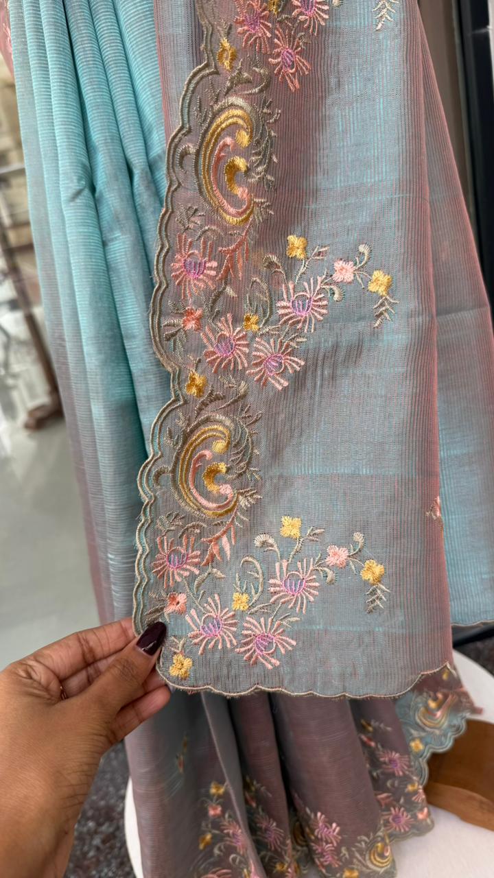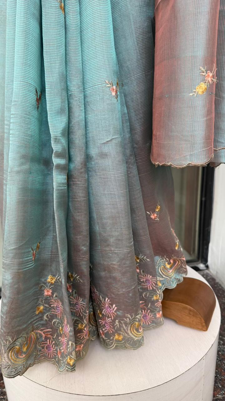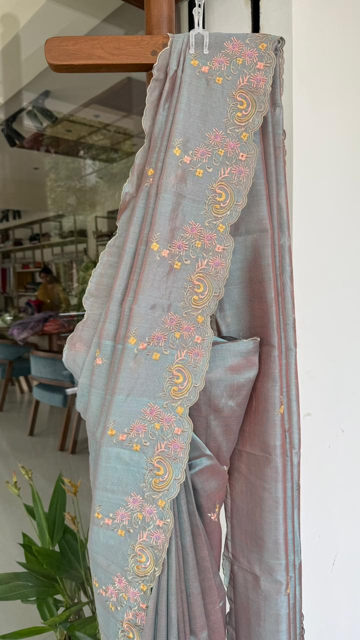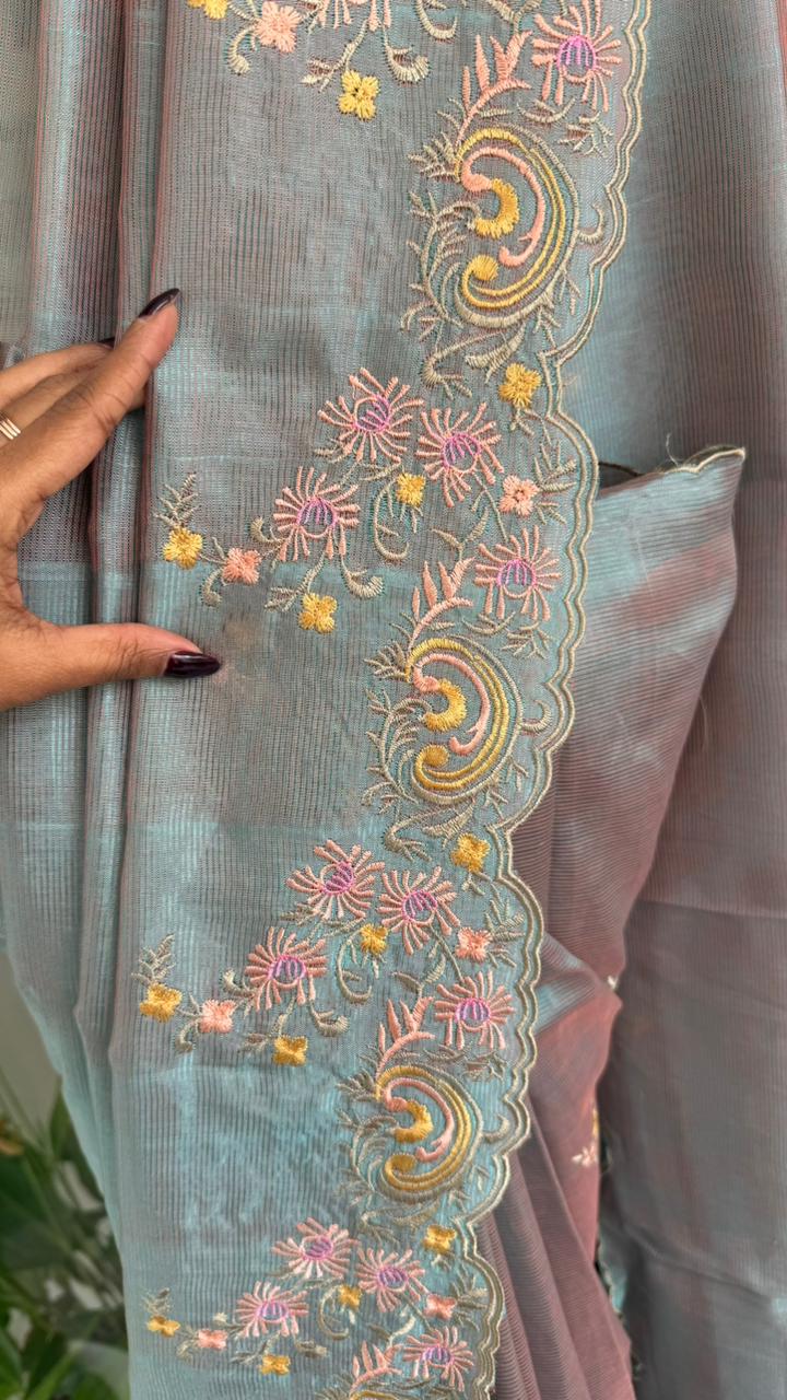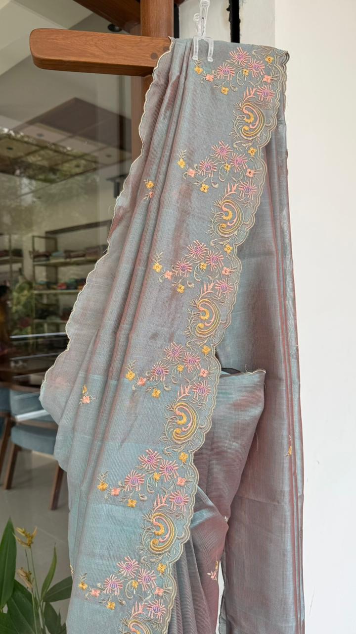 Fabric : Mangalgiri pattu with embroidery thread work with scallop