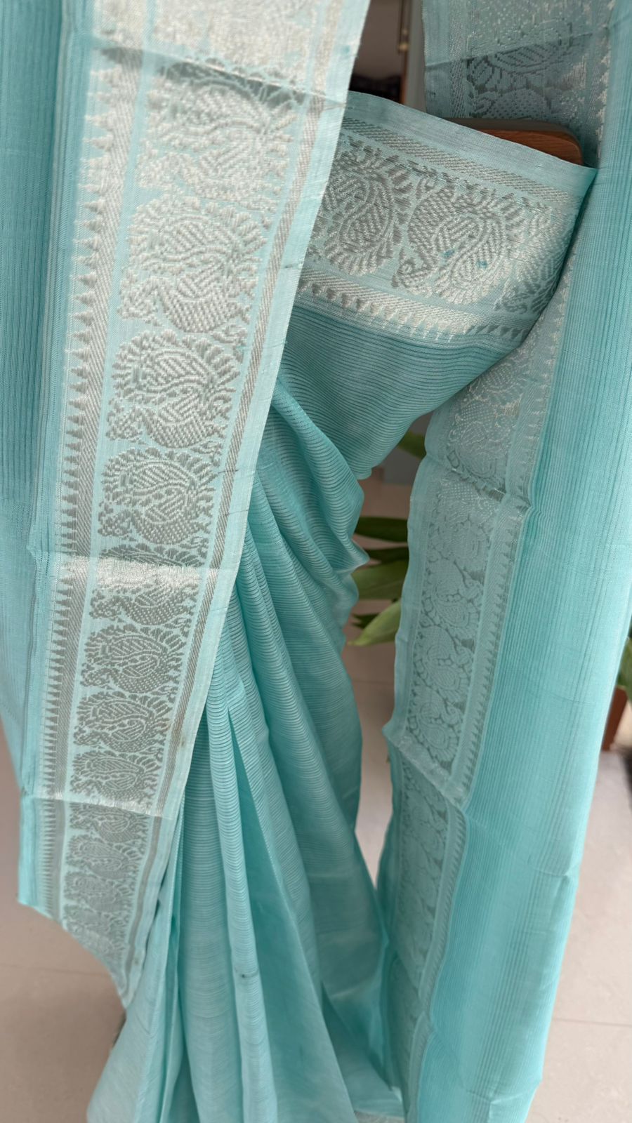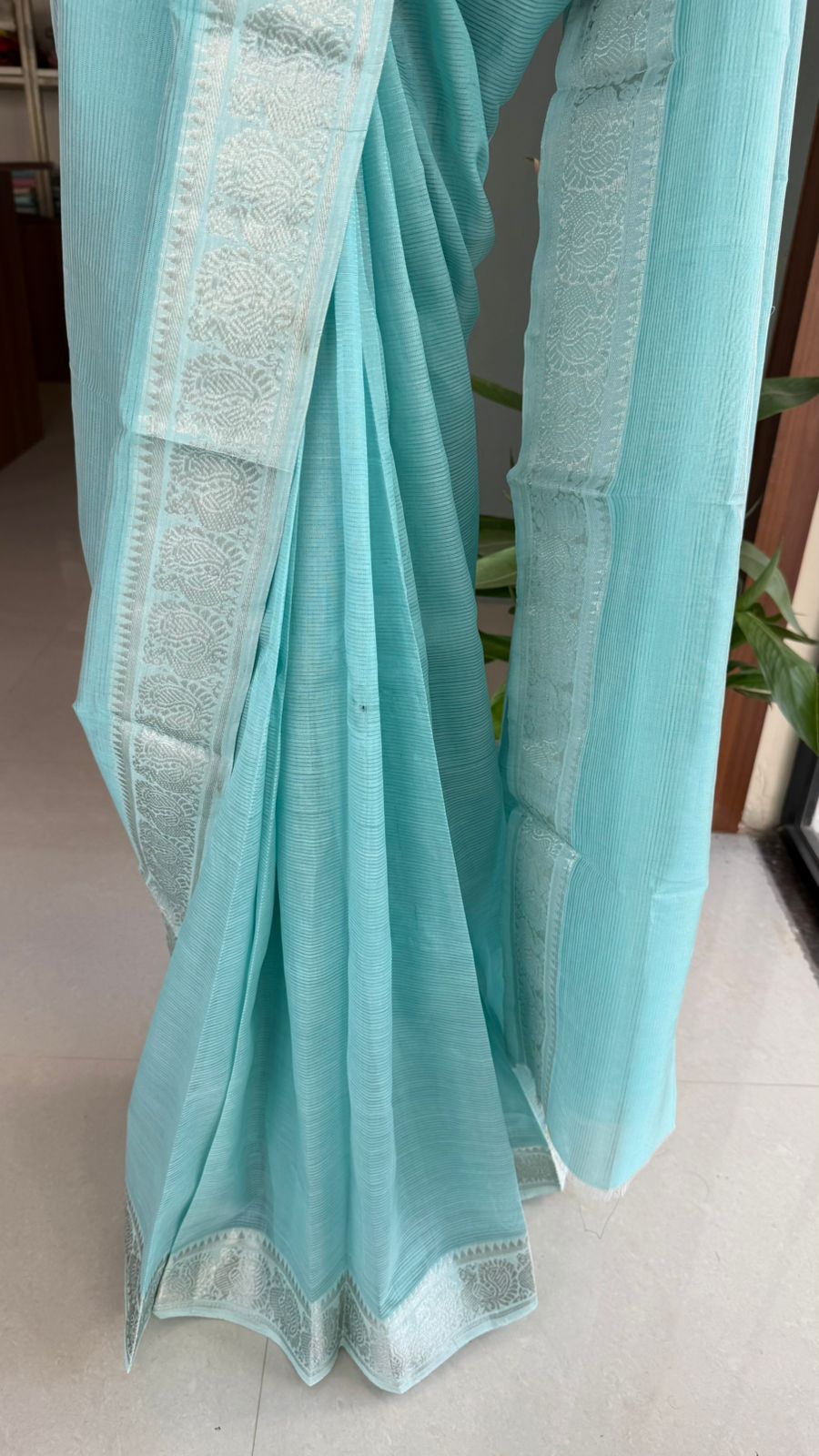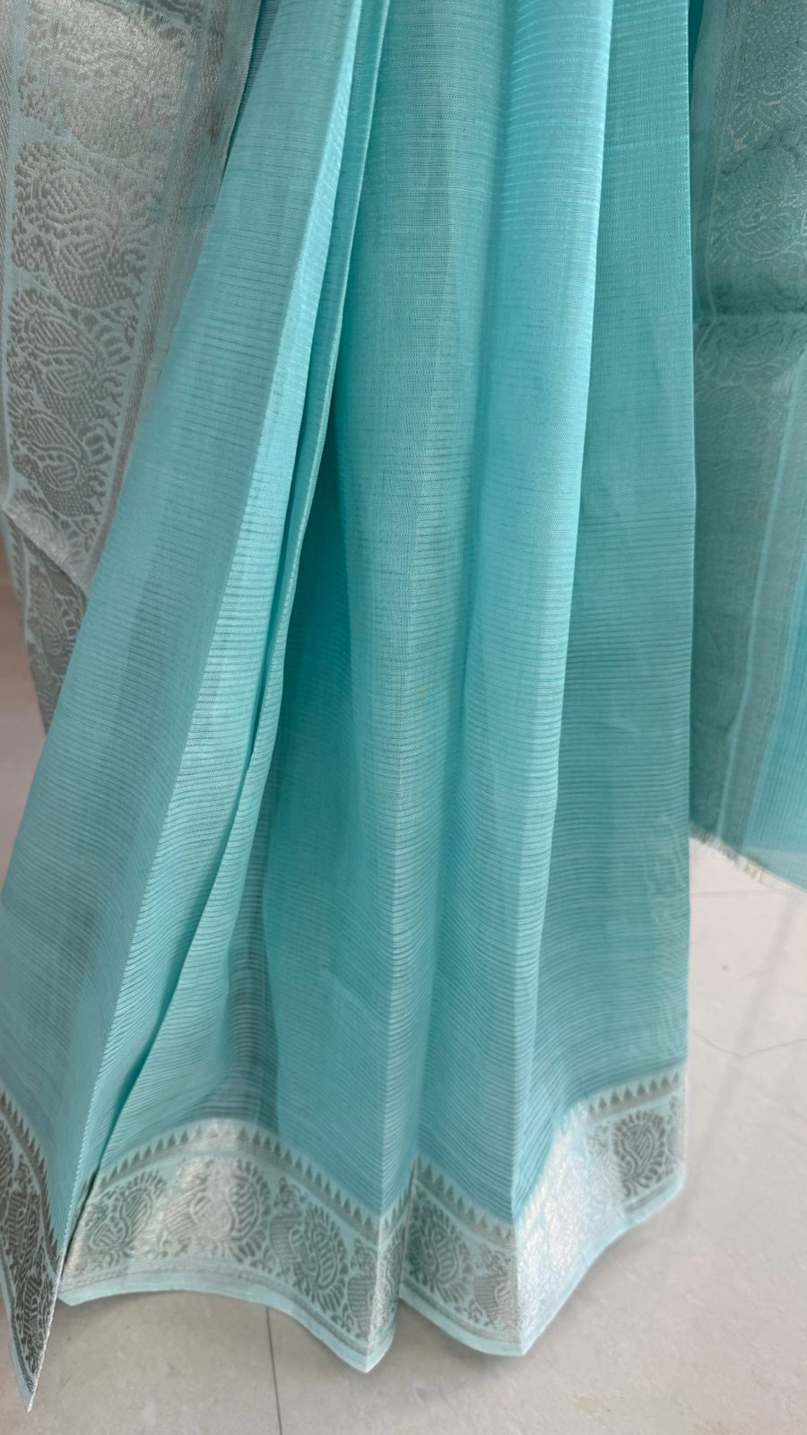 Fabric: Mangalgiri pattu with silver Zari