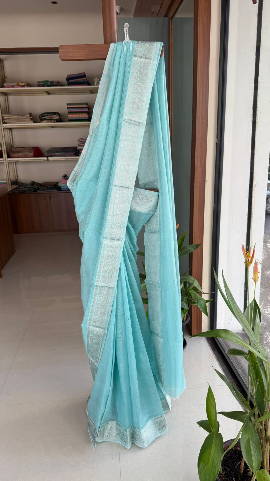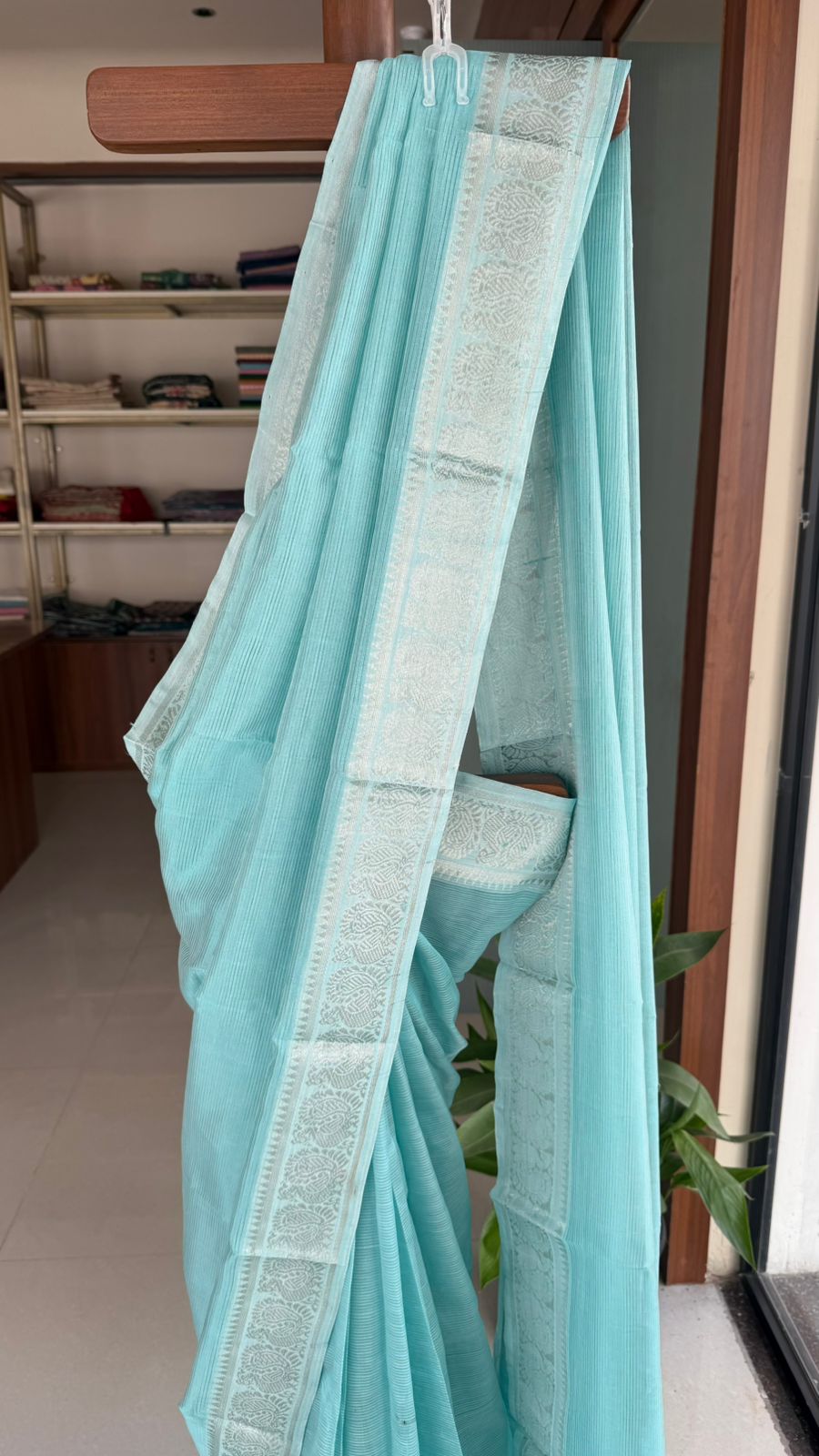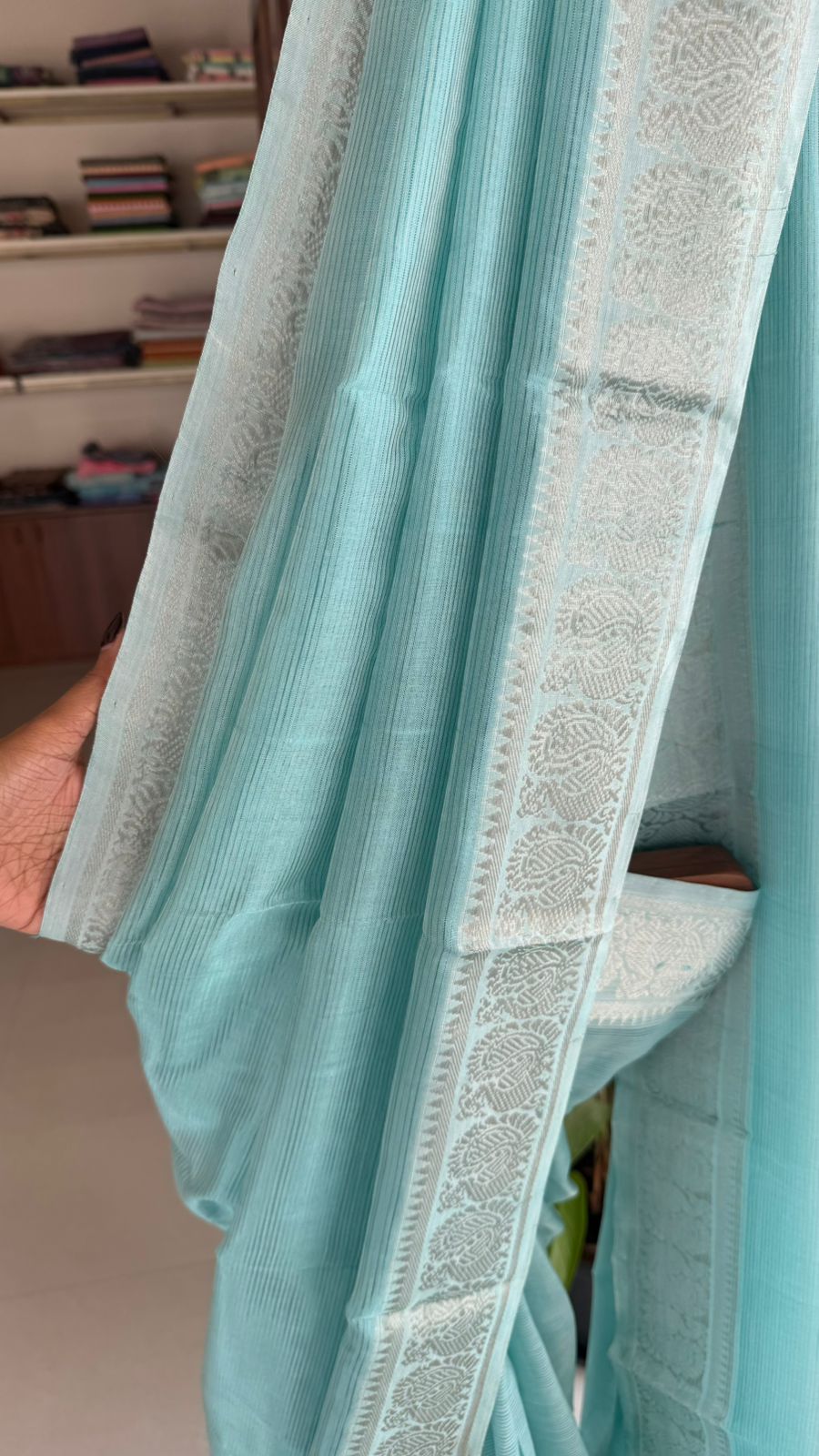 Fabric: Mangalgiri pattu with silver Zari