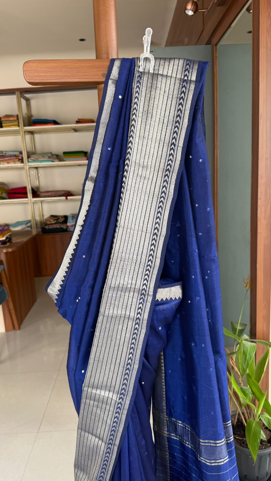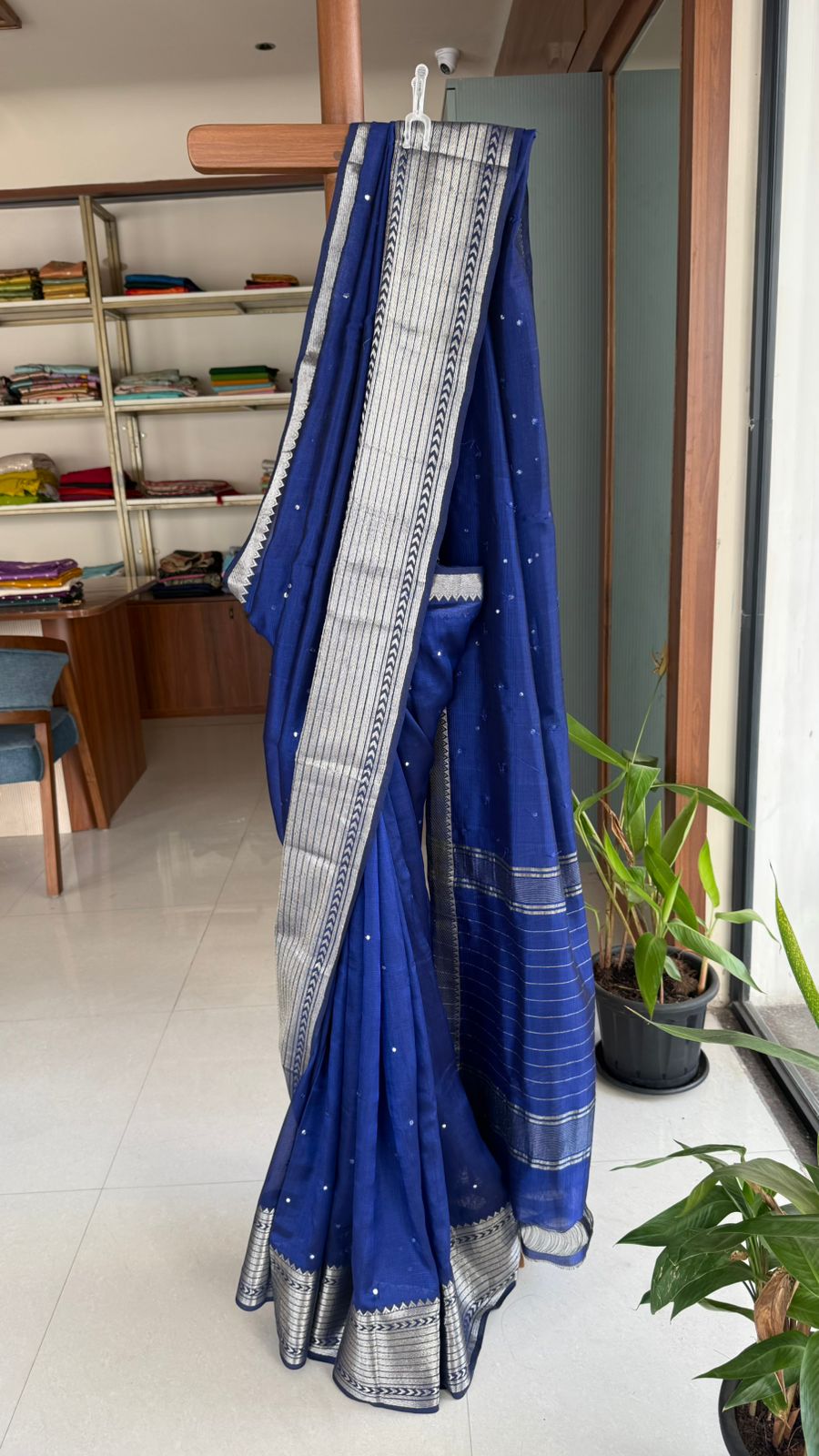 Fabric: Mangalgiri pattu with silver zari border and mirrors
