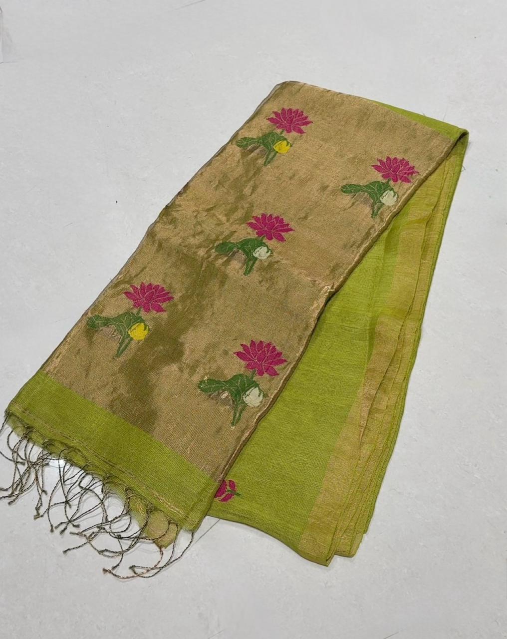 Fabric: Pure lenin tissue with jamdhani weaving