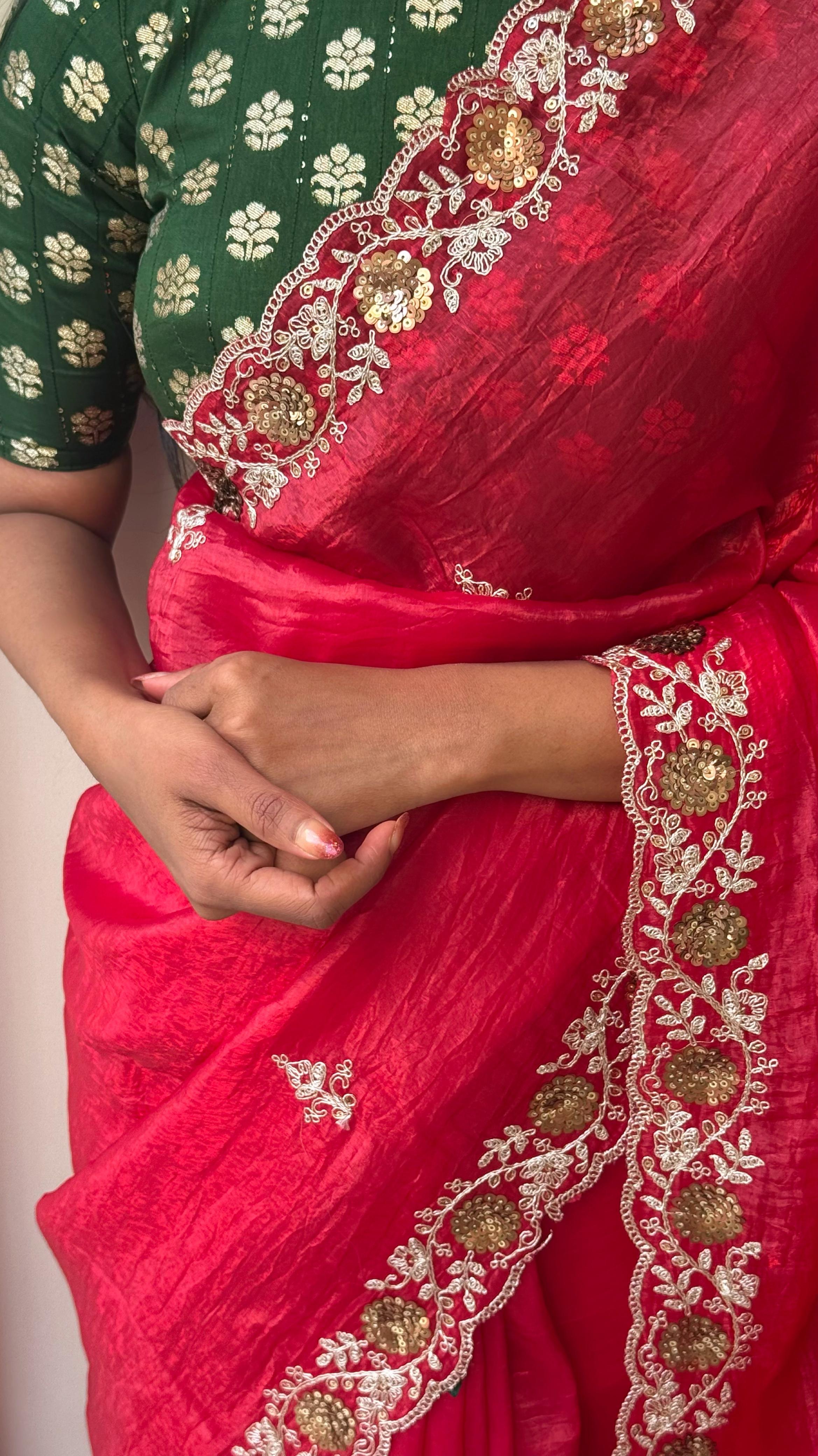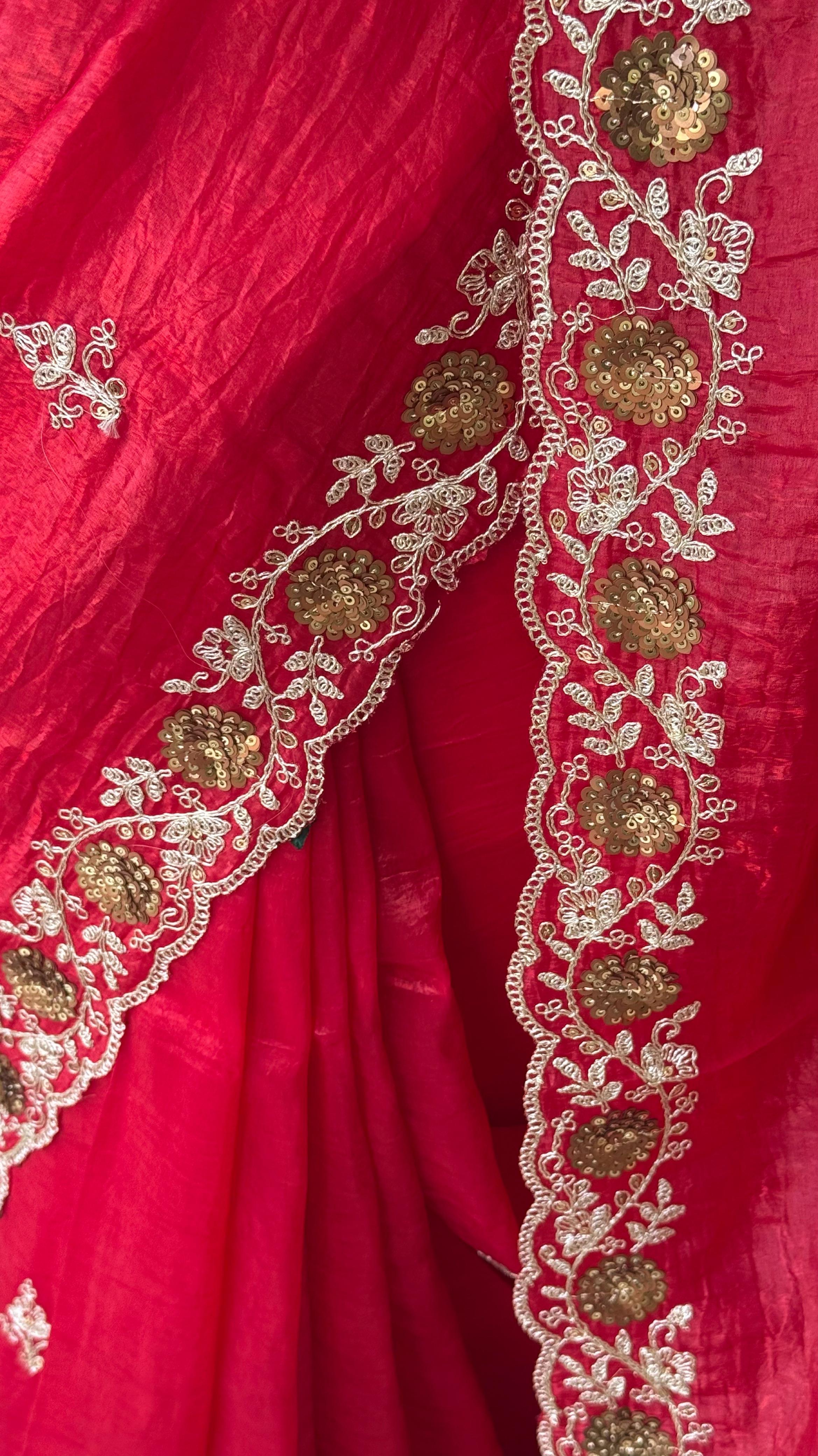 Fabric : Paper crush with embroidery work border