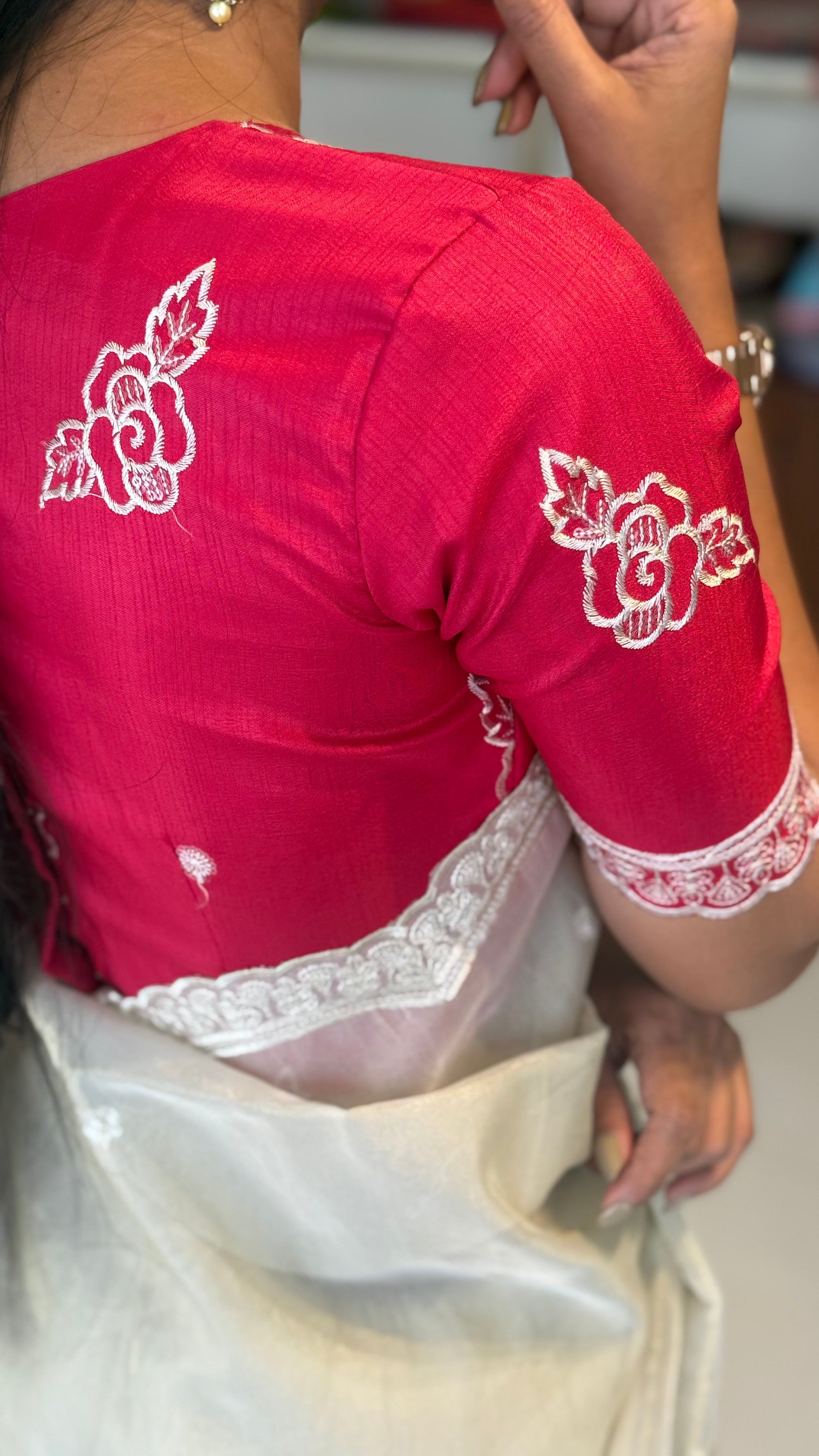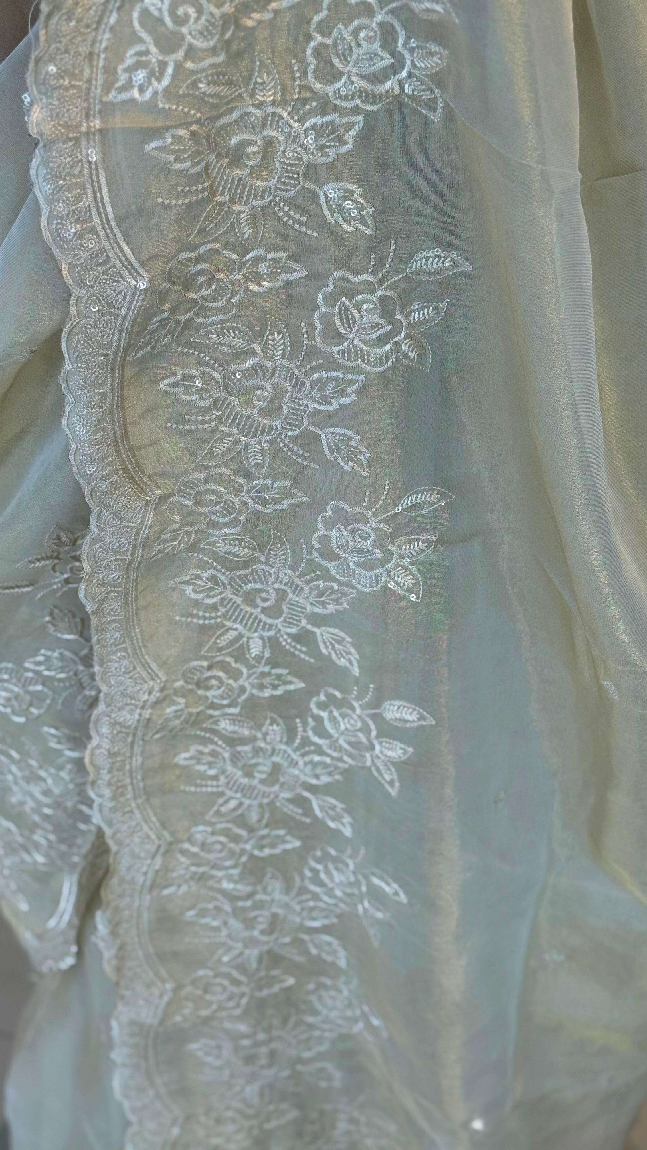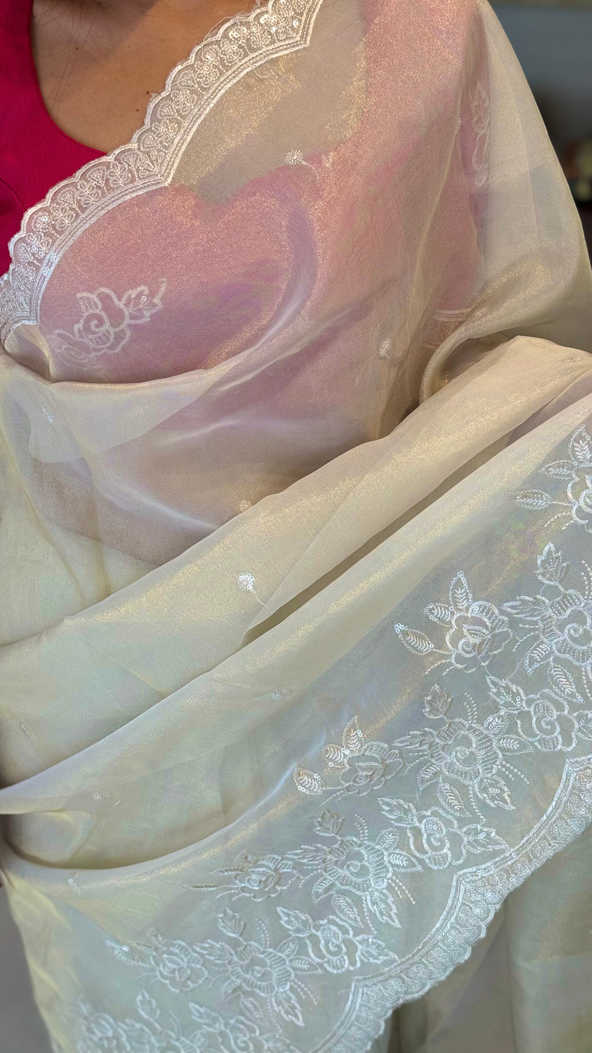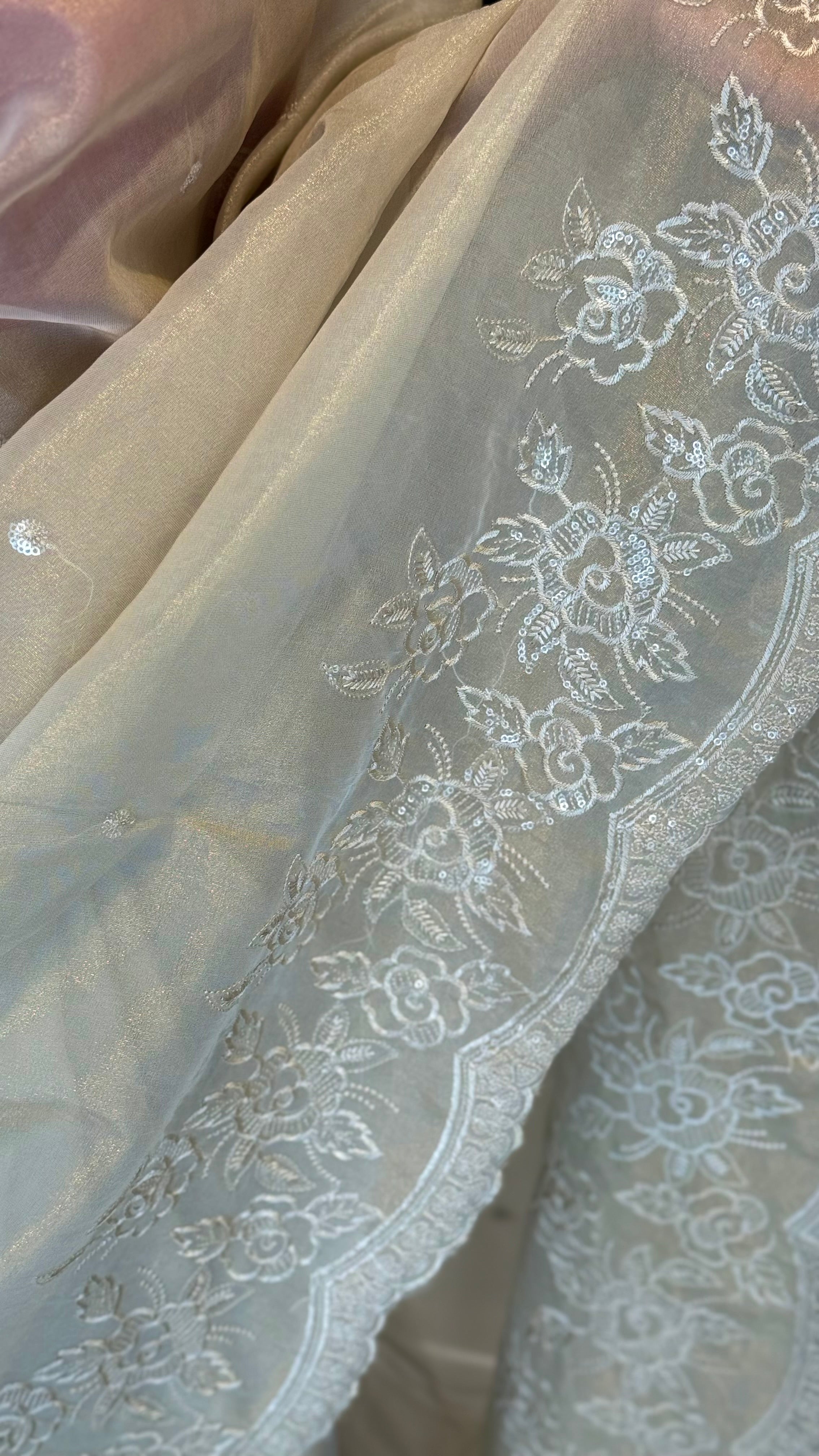 Fabric: Tissue silk with thread embroidery work
