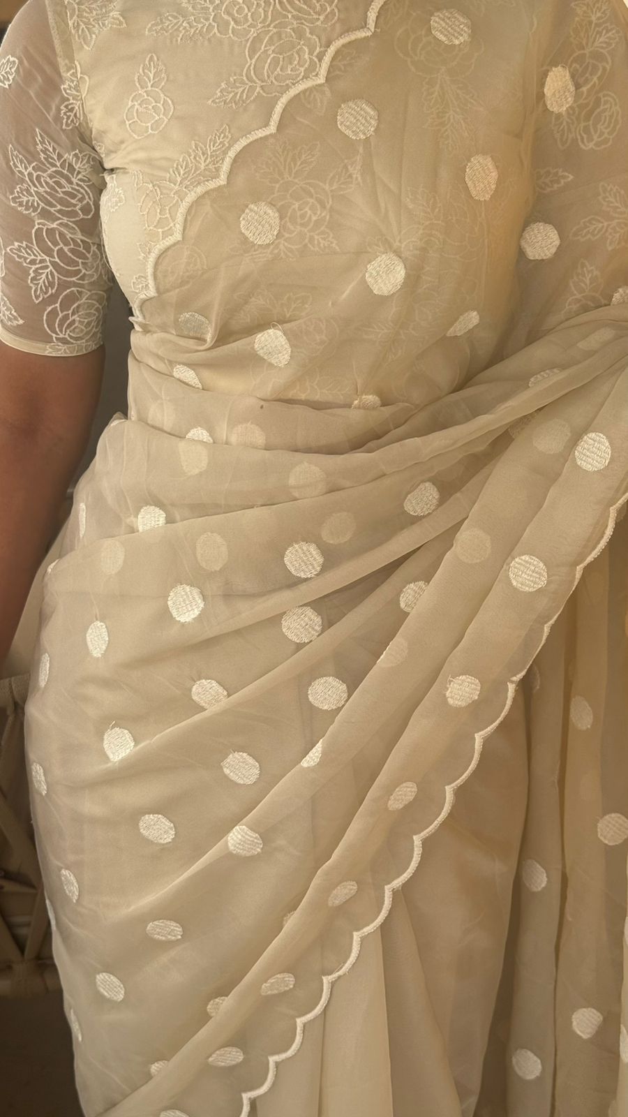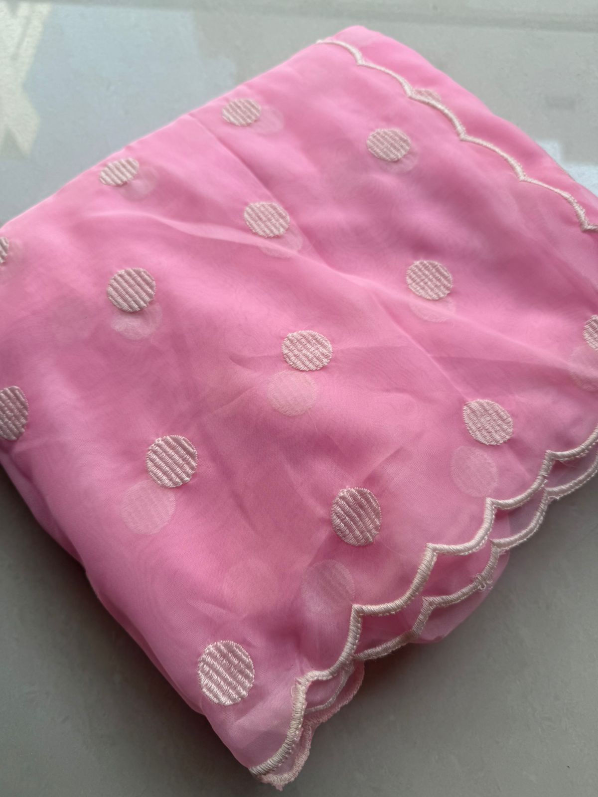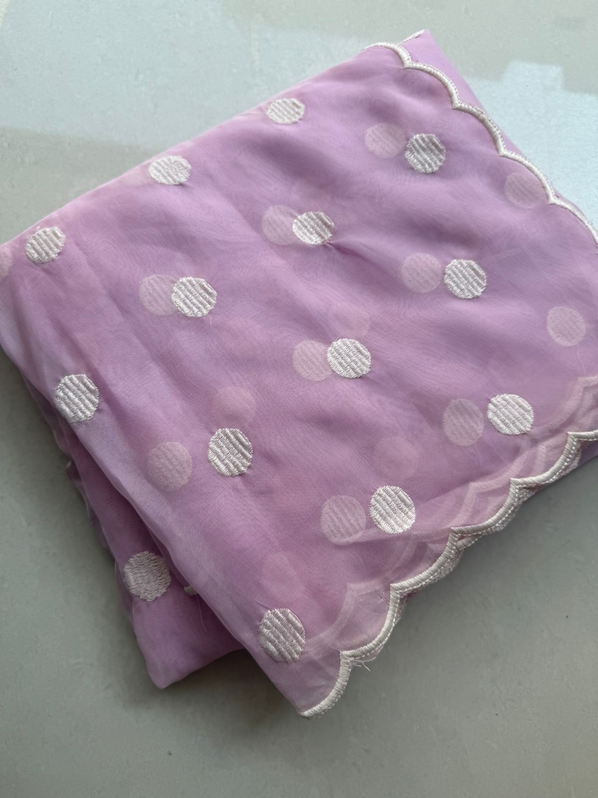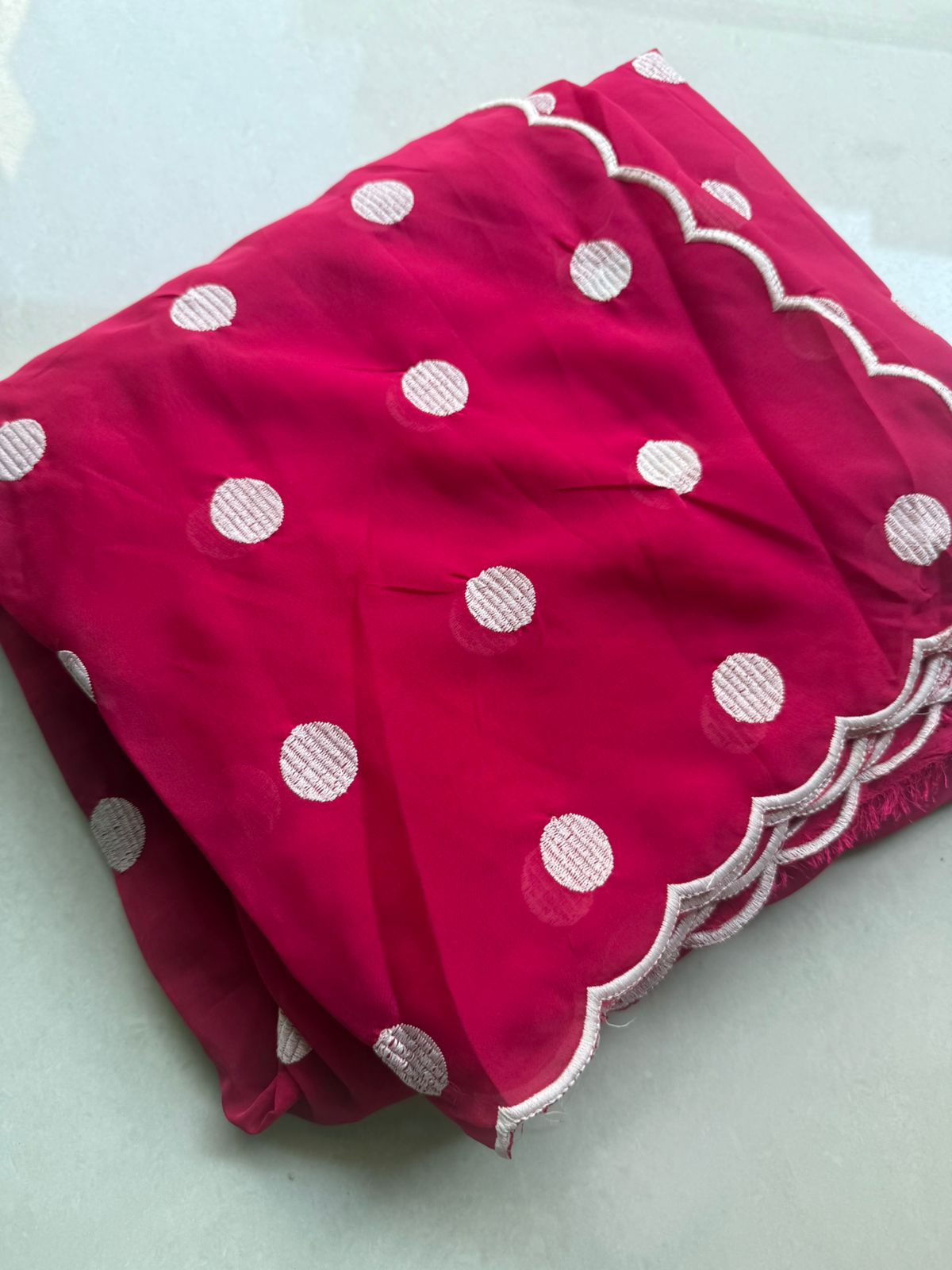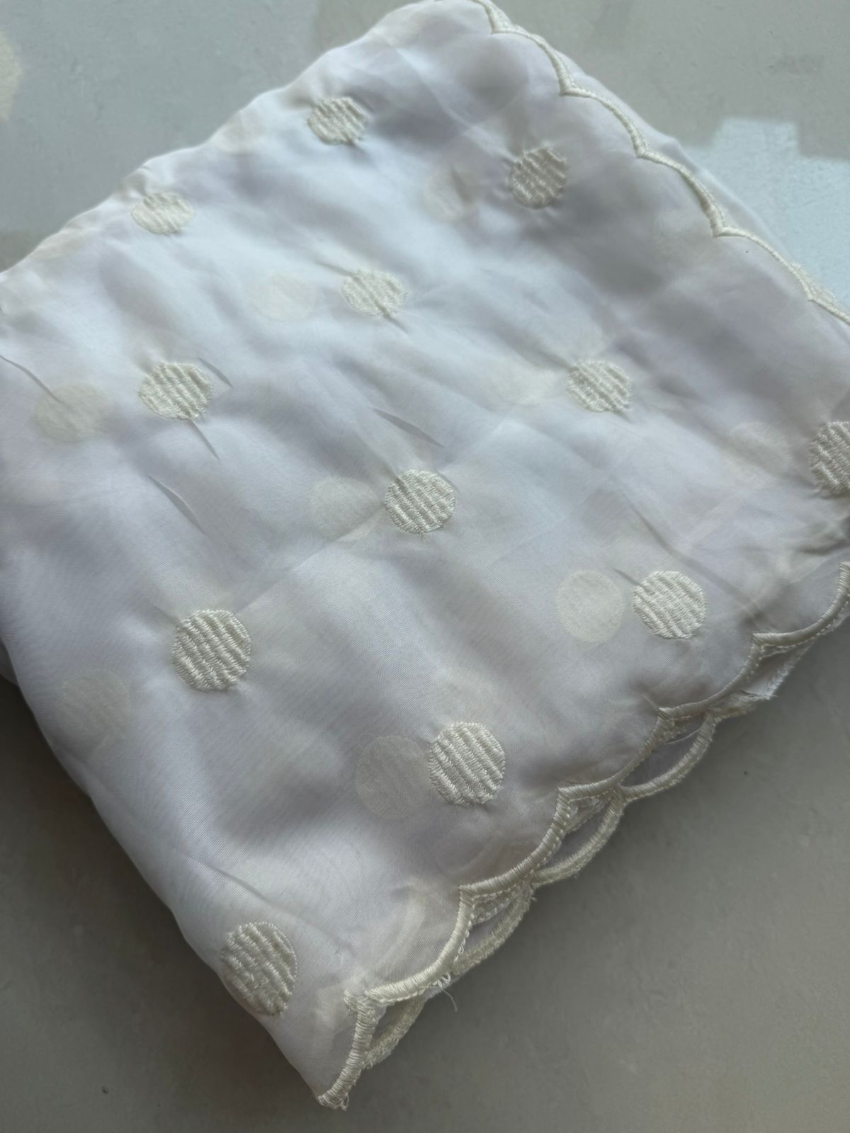 Fabric : Tabby georgette with embroidery polka dots with scallop border